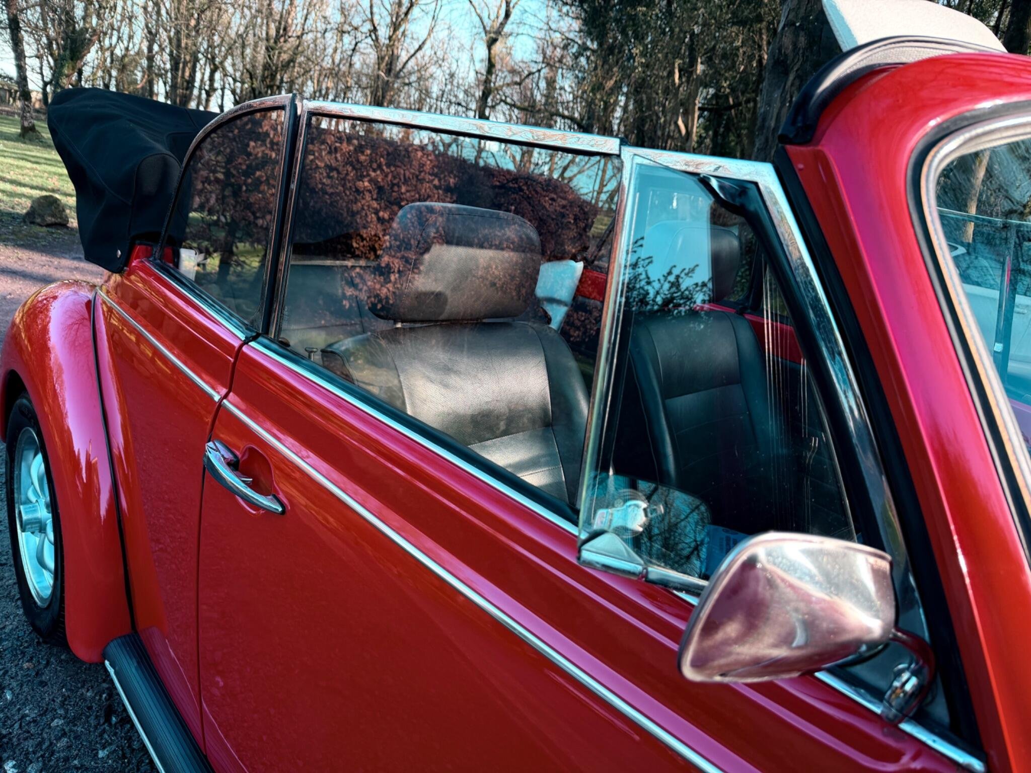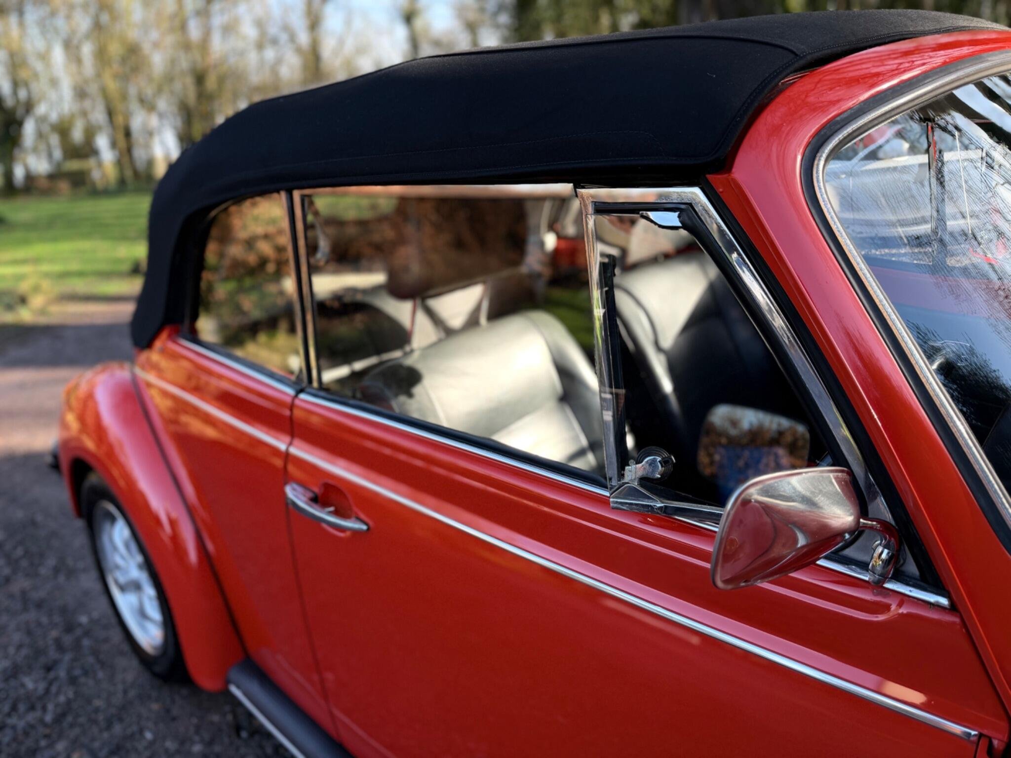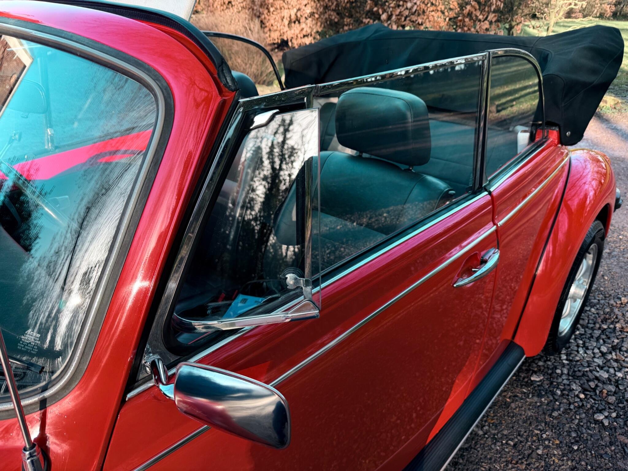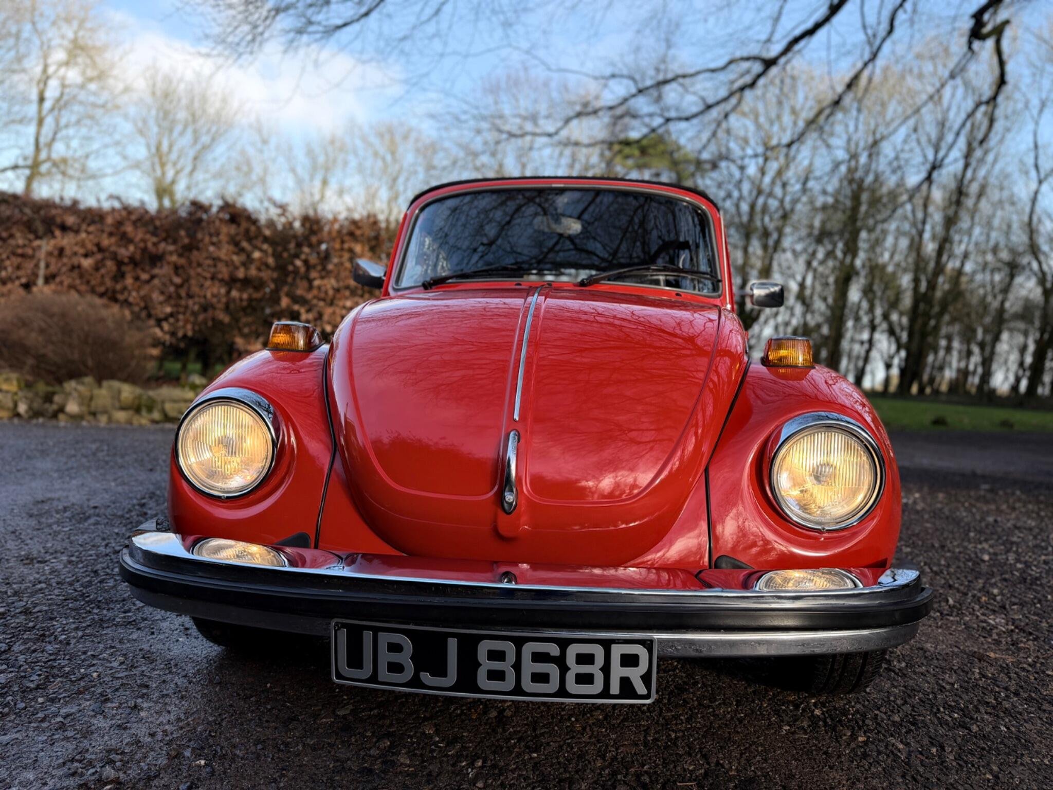 GET READY FOR THE RIDE OF YOUR DREAMS...IN THIS (1977 VW BEETLE KARMANN CABRIOLET IN BEAUTIFUL MARS RED) WHICH IS PAIRED WITH THE PREMIUM CLOTH TOP IN BLACK...THIS 1600cc AIR COOLED FLAT 4 MOTOR RUNS LIKE A CHAMP & THE 4 SPEED MANUAL GEARBOX SHIFTS WITH EASE...THIS IS A TRUE CLASSIC THAT IS READY TO DRIVE AWAY TODAY WITH IT'S STYLE & CHARM...THIS ICONIC SILHOUETTE IS A HEAD TURNER WHEREVER IT GOES BUT DON'T LET IT'S VINTAGE LOOK FOOL YOU...THIS BEETLE HAS BEEN CARED FOR GARAGED & BABIED SINCE IT'S ARRIVAL TO ENGLAND IN AUGUST 1992..ORIGINAL REGISTERED IN CALIFORNIA U.S.A IN 1977 WERE IT STAYED UNTIL IT WAS PURCHASED BY A PRIVATE GENTLEMAN FOR HIS WIFE WHO HAD JEWEL CITIZENSHIP & BROUGHT BACK TO ENGLAND FOR RESTORATION WORKS...AFTER MANY CONVERSATION WITH RESTORATION COMPANY'S HE FINALLY GAVE THE GREEN LIGHT TO A CLASSIC CAR COMPANY IN SUFFOLK ENGLAND TO BEGIN WORKS...THE COST WHICH WAS ESIMATED AT THE START WAS GOING TO BE £7151.00...THAT COST AS YOU CAN IMAGINE HAS GONE UP & UP TO BRING THIS SUPER BEETLE TO THE FINE EXAMPLE IT IS FOR THE YEAR & MILEAGE!!! IN TOTAL THE CHAP HAS SPENT JUST OVER £22'000 ON IT & MAINTAINING IT UNTIL IT WAS SOLD OUT OF THE FAMILY IN THE SEPTEMBER OF 2017, TO IT'S NEW OWNER WHO WAS A EUROPEAN LADY WHO RESIDE PARTIALLY IN THE ISLE OF WIGHT WHICH IS WERE IT HAS BEEN TUCKED AWAY IN THERE GARAGE IN THERE SUMMER HOUSE....SHE TOO MUST BE GIVEN FULL CREDIT FOR THE CONDTION IT IS IN TODAY...DUE TO KEEPING IT IN A SUPERB ORDER THROUGHOUT HER OWNERSHIP THIS LITTLE BEETLE HAS WANTED FOR NOTHING,JUST HAVING A TOTAL UP ON THE INVOICES IT LOOKS TO BE JUST OVER £5000.00 SINCE 2017.... WE HAVE FULL DOCUMENTED HISTORY OF ALL THE WORKS COMPLETED SINCE 1992 RIGHT UP TO THE LAST ENTRY WHICH WAS OCT 2025 @75444..WE HAVE A RING BINDER FILE IN CHRONOLOGICAL ORDER OF INVOICES-OLD MOT'S-OLD ROAD TAX DISCS-PHOTOS OF HER WHEN SHE WAS FIRST PURCHASED FROM CALIFORNIA IN 1992 & PHOTO OF HER COMPLETED IN ENGLAND..SHE IS MOT EXEMPT!! BUT THE LAST OWNER STILL HAD IT MOT & IT EXPIRYS 29TH OCT 2026...IF YOU ARE LOOKING TO RIDE IN A DROP TOP,,YOU WON'T DISAPPOINTED!!!