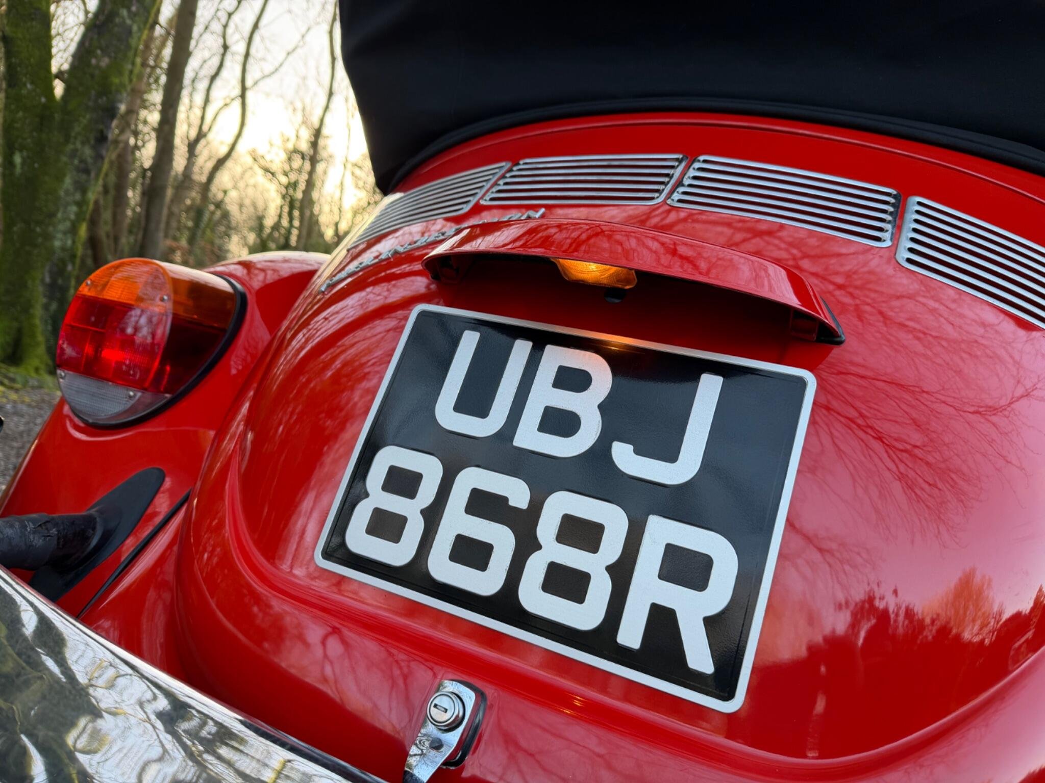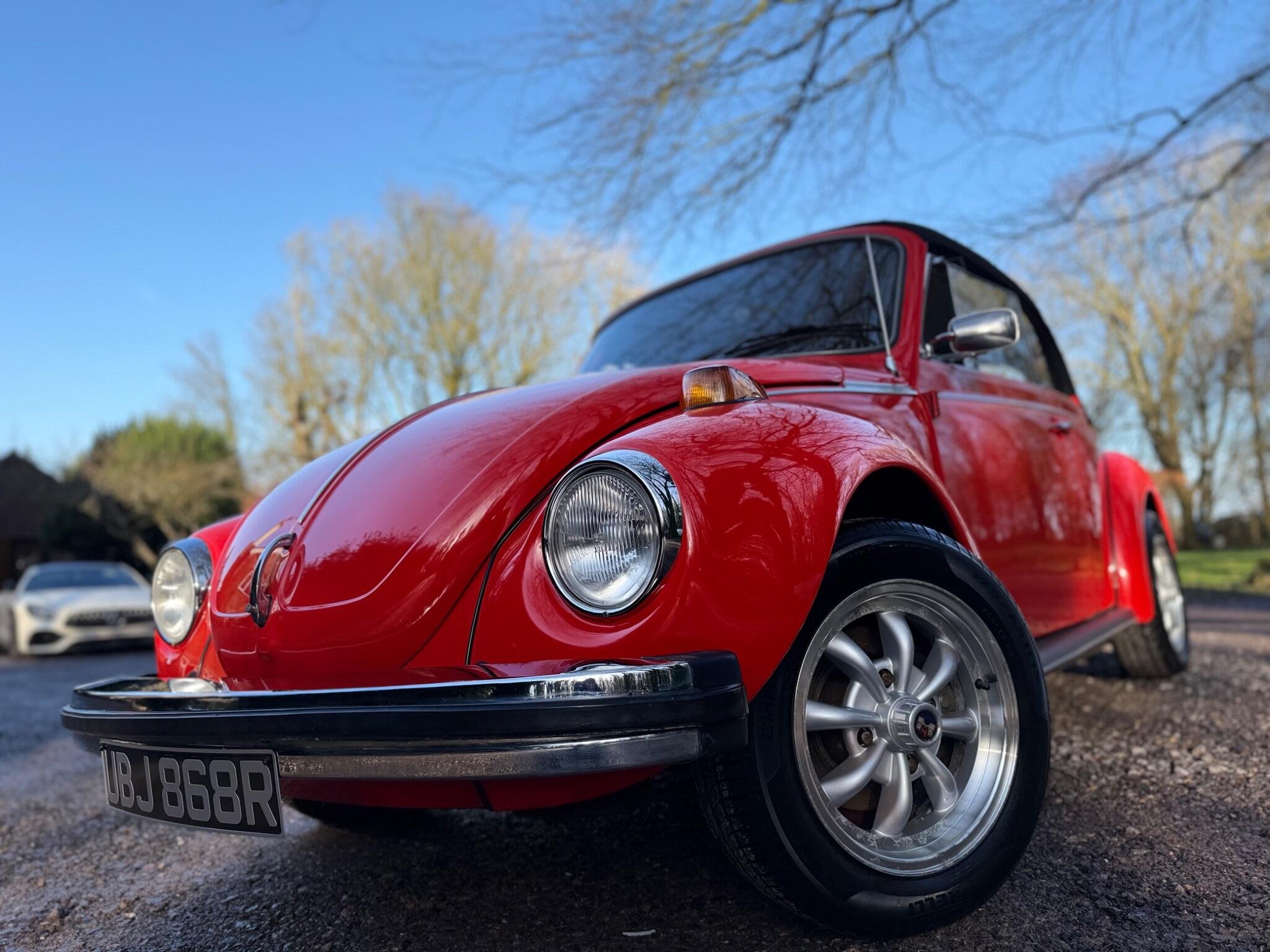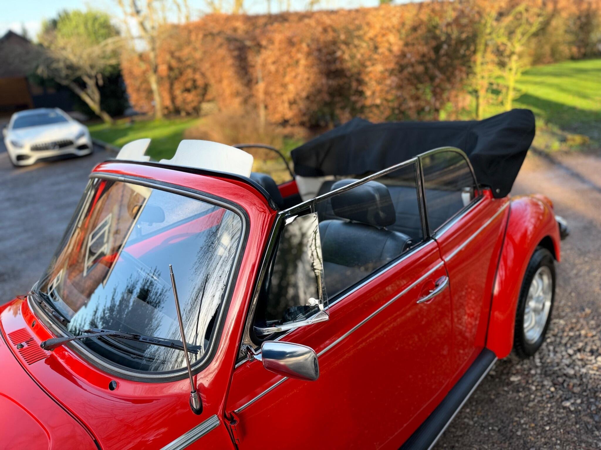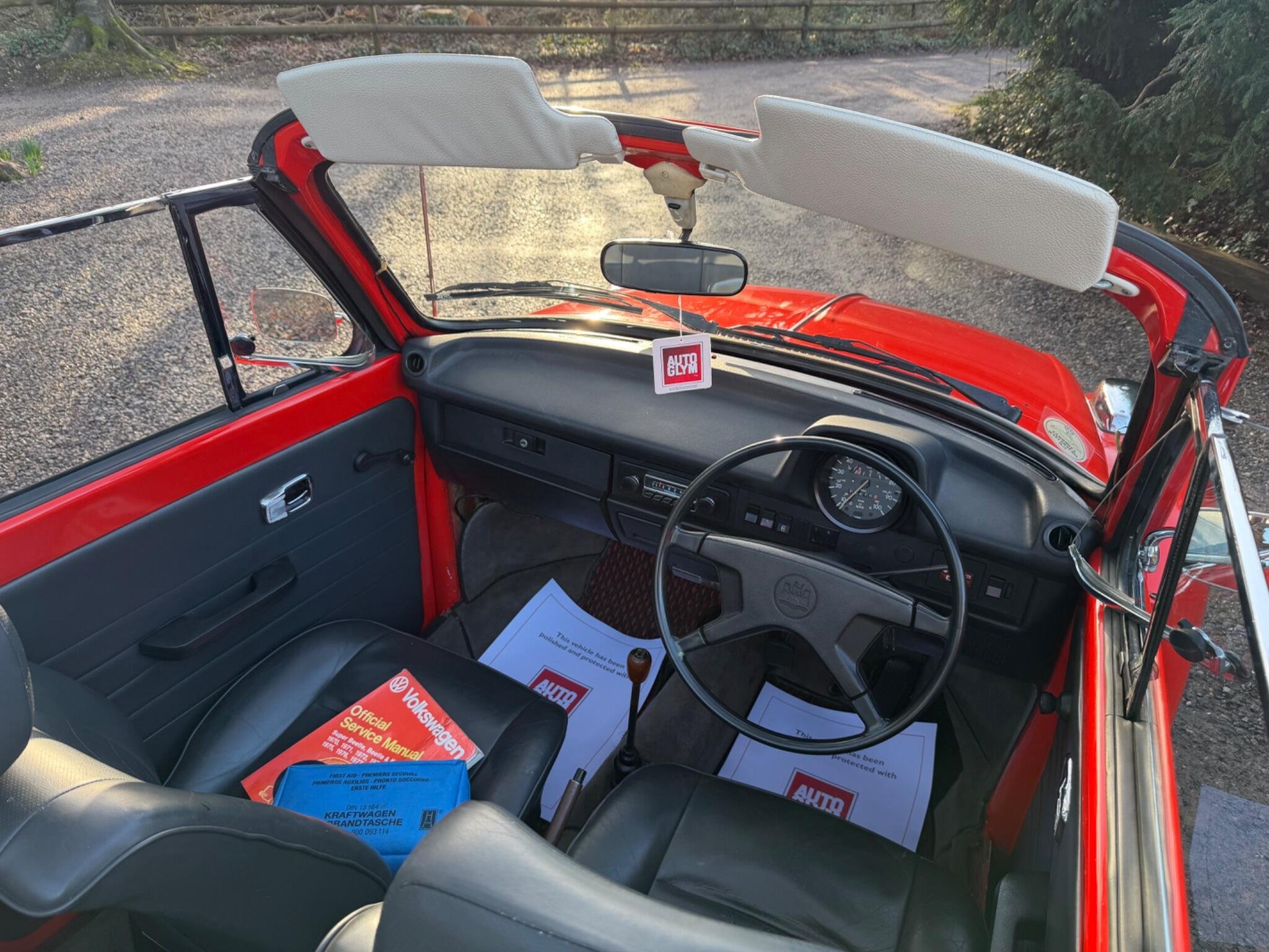 GET READY FOR THE RIDE OF YOUR DREAMS...IN THIS (1977 VW BEETLE KARMANN CABRIOLET IN BEAUTIFUL MARS RED) WHICH IS PAIRED WITH THE PREMIUM CLOTH TOP IN BLACK...THIS 1600cc AIR COOLED FLAT 4 MOTOR RUNS LIKE A CHAMP & THE 4 SPEED MANUAL GEARBOX SHIFTS WITH EASE...THIS IS A TRUE CLASSIC THAT IS READY TO DRIVE AWAY TODAY WITH IT'S STYLE & CHARM...THIS ICONIC SILHOUETTE IS A HEAD TURNER WHEREVER IT GOES BUT DON'T LET IT'S VINTAGE LOOK FOOL YOU...THIS BEETLE HAS BEEN CARED FOR GARAGED & BABIED SINCE IT'S ARRIVAL TO ENGLAND IN AUGUST 1992..ORIGINAL REGISTERED IN CALIFORNIA U.S.A IN 1977 WERE IT STAYED UNTIL IT WAS PURCHASED BY A PRIVATE GENTLEMAN FOR HIS WIFE WHO HAD JEWEL CITIZENSHIP & BROUGHT BACK TO ENGLAND FOR RESTORATION WORKS...AFTER MANY CONVERSATION WITH RESTORATION COMPANY'S HE FINALLY GAVE THE GREEN LIGHT TO A CLASSIC CAR COMPANY IN SUFFOLK ENGLAND TO BEGIN WORKS...THE COST WHICH WAS ESIMATED AT THE START WAS GOING TO BE £7151.00...THAT COST AS YOU CAN IMAGINE HAS GONE UP & UP TO BRING THIS SUPER BEETLE TO THE FINE EXAMPLE IT IS FOR THE YEAR & MILEAGE!!! IN TOTAL THE CHAP HAS SPENT JUST OVER £22'000 ON IT & MAINTAINING IT UNTIL IT WAS SOLD OUT OF THE FAMILY IN THE SEPTEMBER OF 2017, TO IT'S NEW OWNER WHO WAS A EUROPEAN LADY WHO RESIDE PARTIALLY IN THE ISLE OF WIGHT WHICH IS WERE IT HAS BEEN TUCKED AWAY IN THERE GARAGE IN THERE SUMMER HOUSE....SHE TOO MUST BE GIVEN FULL CREDIT FOR THE CONDTION IT IS IN TODAY...DUE TO KEEPING IT IN A SUPERB ORDER THROUGHOUT HER OWNERSHIP THIS LITTLE BEETLE HAS WANTED FOR NOTHING,JUST HAVING A TOTAL UP ON THE INVOICES IT LOOKS TO BE JUST OVER £5000.00 SINCE 2017.... WE HAVE FULL DOCUMENTED HISTORY OF ALL THE WORKS COMPLETED SINCE 1992 RIGHT UP TO THE LAST ENTRY WHICH WAS OCT 2025 @75444..WE HAVE A RING BINDER FILE IN CHRONOLOGICAL ORDER OF INVOICES-OLD MOT'S-OLD ROAD TAX DISCS-PHOTOS OF HER WHEN SHE WAS FIRST PURCHASED FROM CALIFORNIA IN 1992 & PHOTO OF HER COMPLETED IN ENGLAND..SHE IS MOT EXEMPT!! BUT THE LAST OWNER STILL HAD IT MOT & IT EXPIRYS 29TH OCT 2026...IF YOU ARE LOOKING TO RIDE IN A DROP TOP,,YOU WON'T DISAPPOINTED!!!